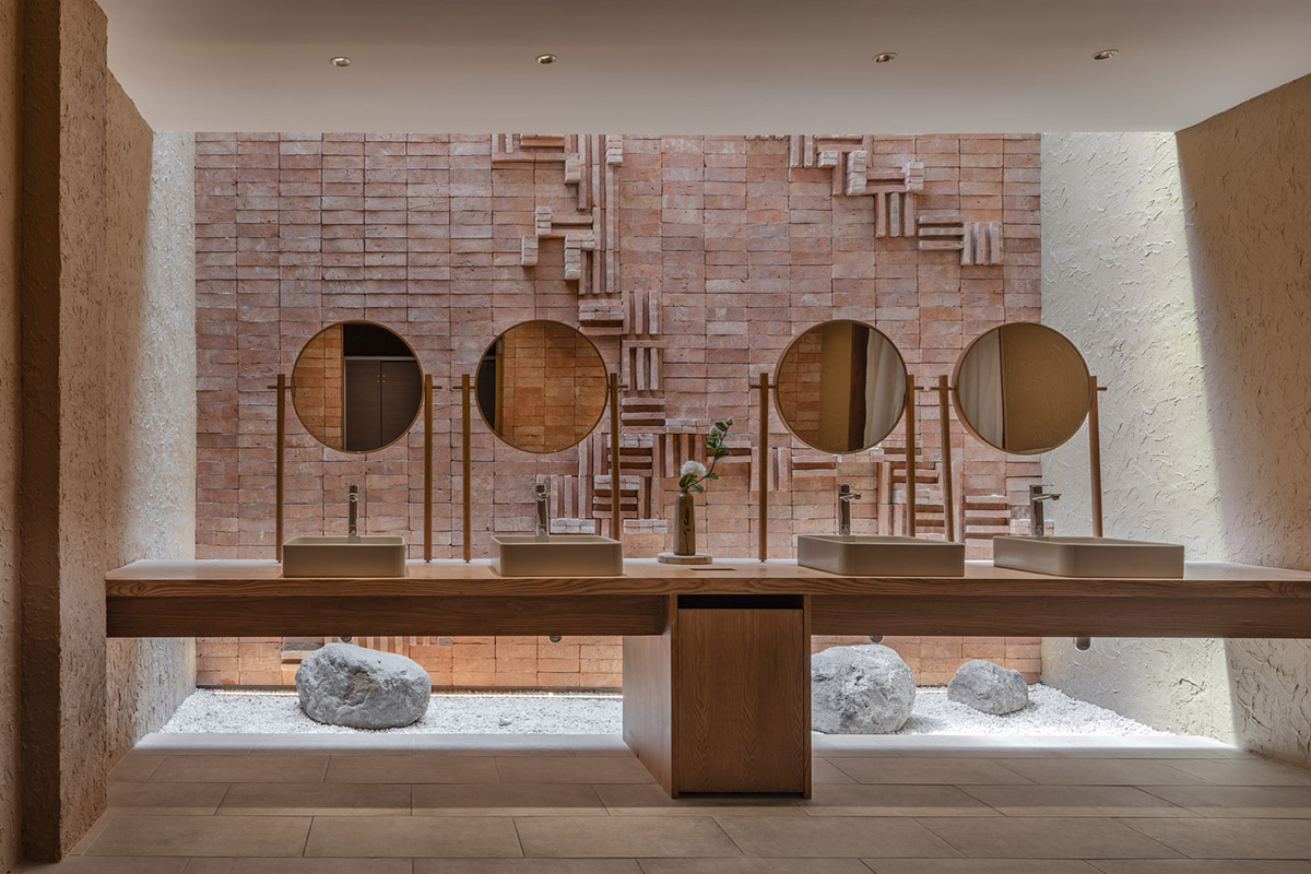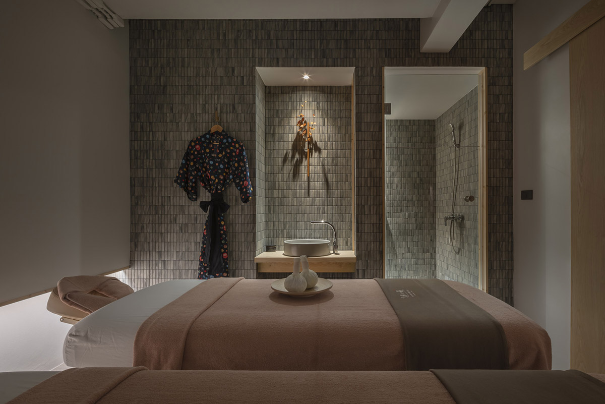 Ý tưởng là thay đổi dần cái nhìn của khách về không gian, từ thô ráp sang thư giãn, khi khách bước qua từng khu vực. Các phòng trị liệu thì mang lại cảm giác thân mật hơn.